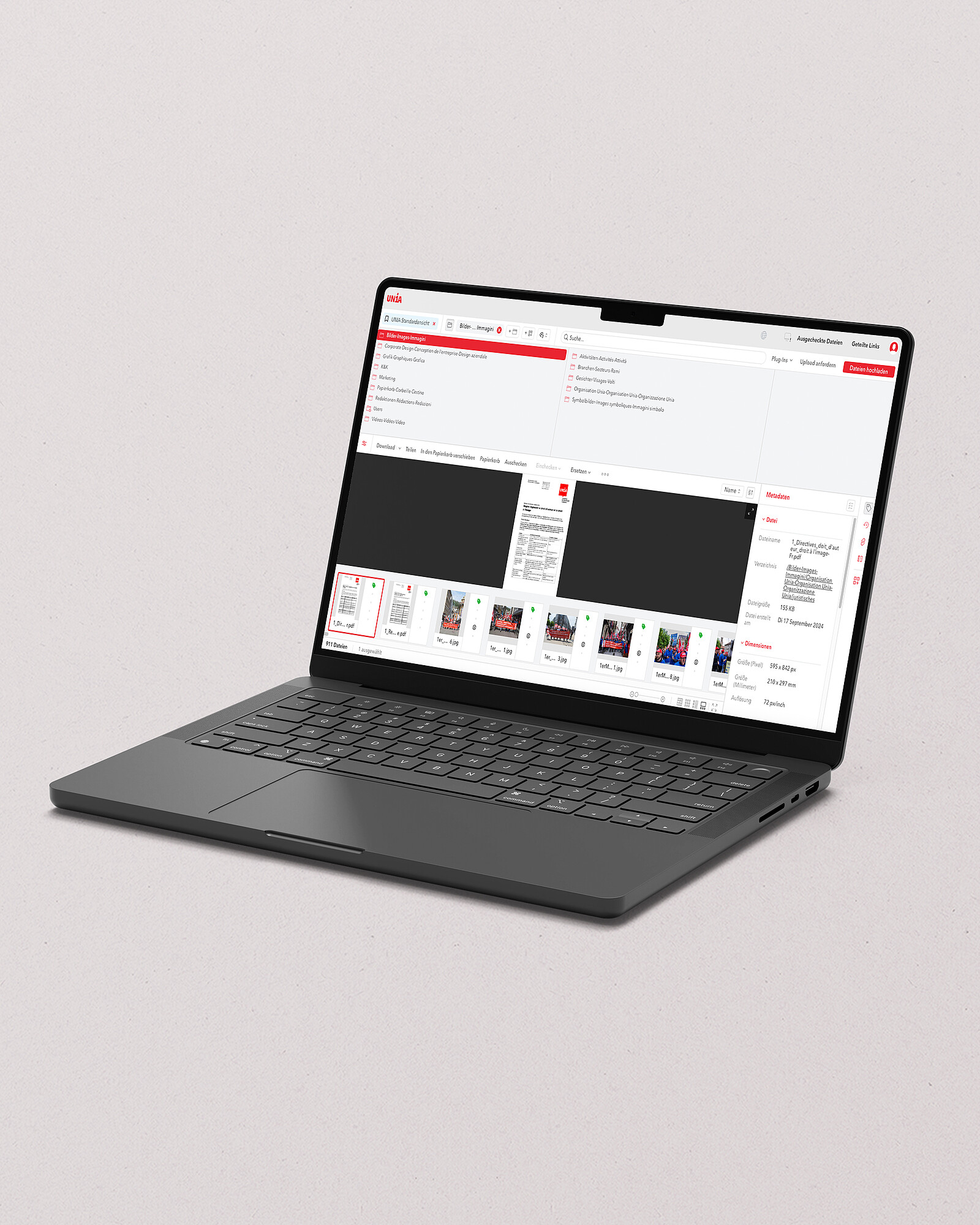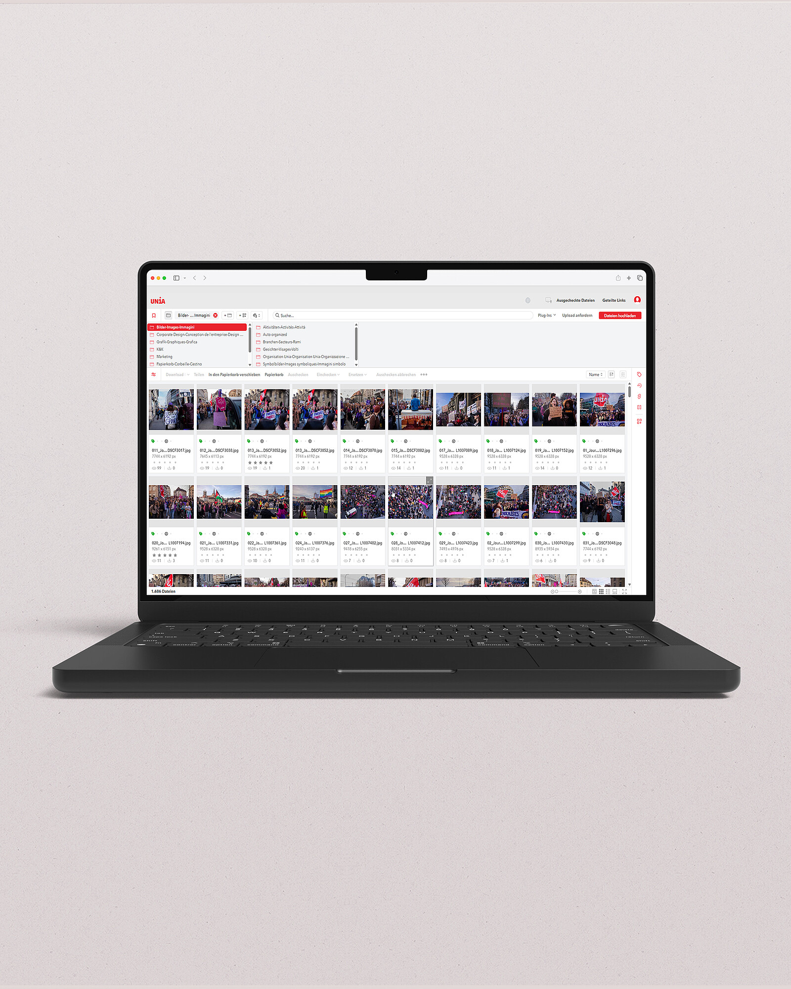 Heute dient die Mediendatenbank allen Teams der Kommunikationsabteilung als zentrale Ablage. Dank der SSO-Anbindung (Single Sign-on) haben alle Unia-Mitarbeitenden einfach und schnell Zugriff auf die freigegebenen Inhalte, die sie für ihre Arbeit benötigen.