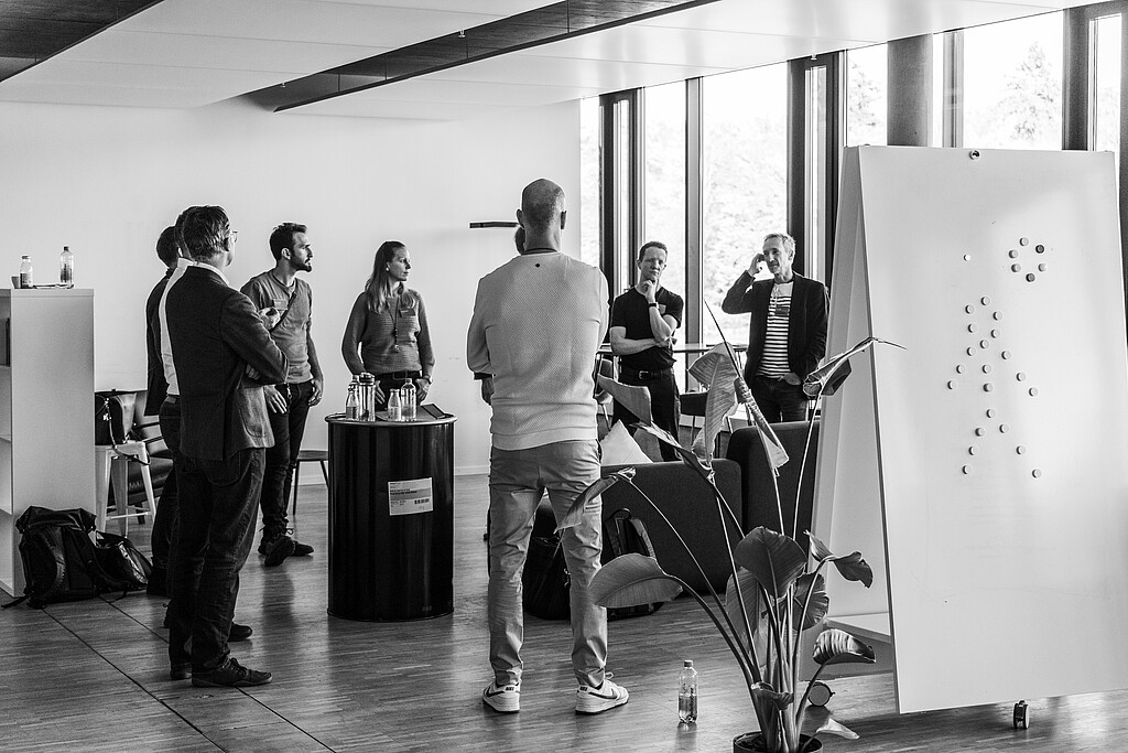 Die Sessionanbietenden kümmern sich darum, dass alle, die zur Session gekommen sind, sich wohlfühlen und etwas beitragen können. Sie achten auch auf das Einhalten der Zeit (45 Minuten pro Session). Um die Dokumentation der Session kümmern sich Stämpfli-Mitarbeitende im Raum. Sie unterstützen auch bei Fragen.